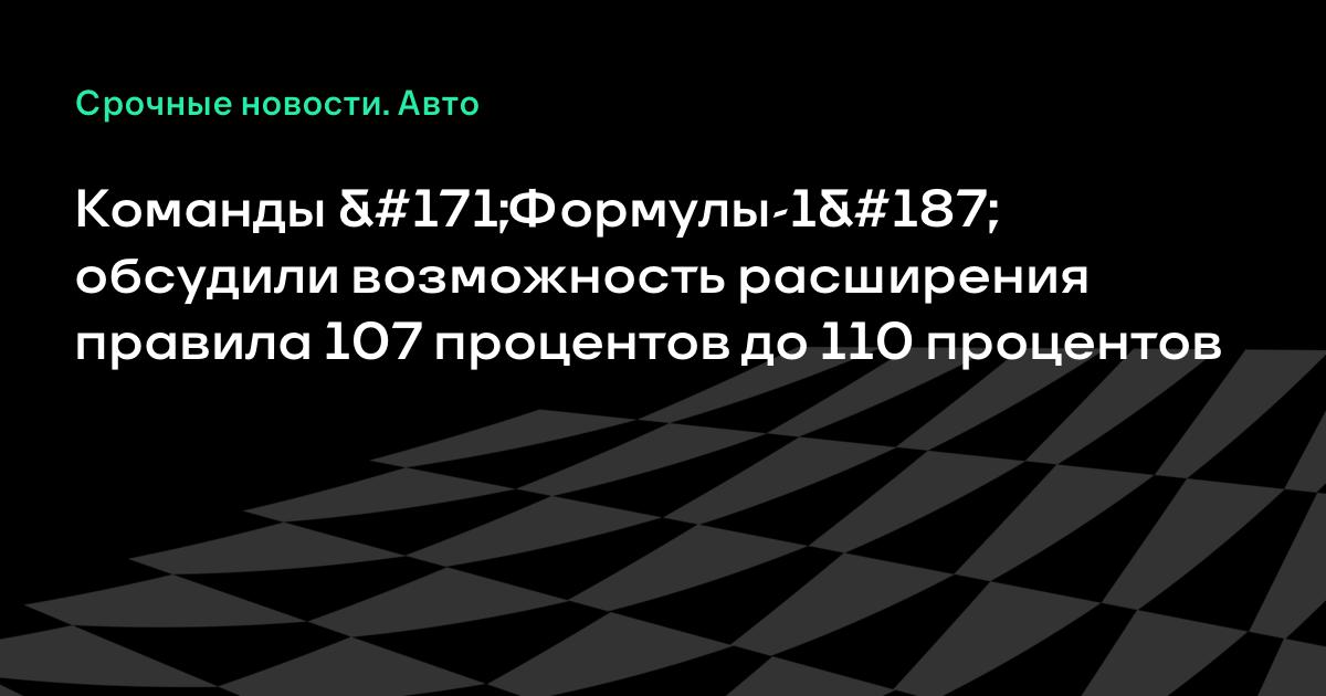 Команды «Формулы-1» обсудили возможность изменения в следующем сезоне правила 107 процентов и увеличения лимита для прохождения квалификации до 110 процентов. Такое предложение было выдвинуто для того, чтобы команды из конца пелотона не подвергались риску не попасть на старт гонки, если такие конюшни, как «Ред Булл», добьются большого прогресса в следующем году. Однако это предложение не нашло широкой поддержки и практически наверняка не будет принято во внимание, пишет Autosport.