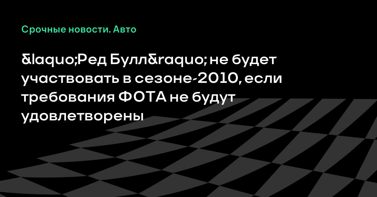 Получивший безусловное место в чемпионате мира «Ф-1» в 2010 году «Ред Булл» подтвердил свое намерение не участвовать в первенстве, если не будут приняты требования ФОТА. Ранее с аналогичным заявлением выступила «Феррари».