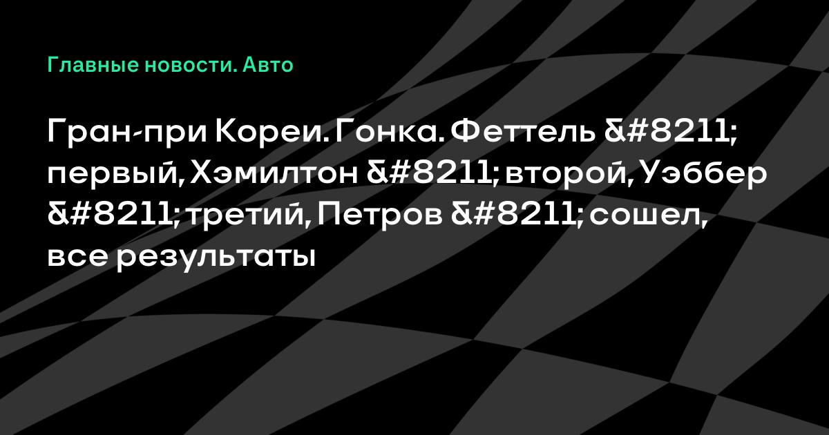 Гран-при Кореи. Гонка. Феттель – первый, Хэмилтон – второй, Уэббер – третий, Петров – сошел, все результаты