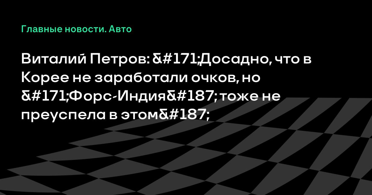Виталий Петров: «Досадно, что в Корее не заработали очков, но «Форс-Индия» тоже не преуспела в этом»