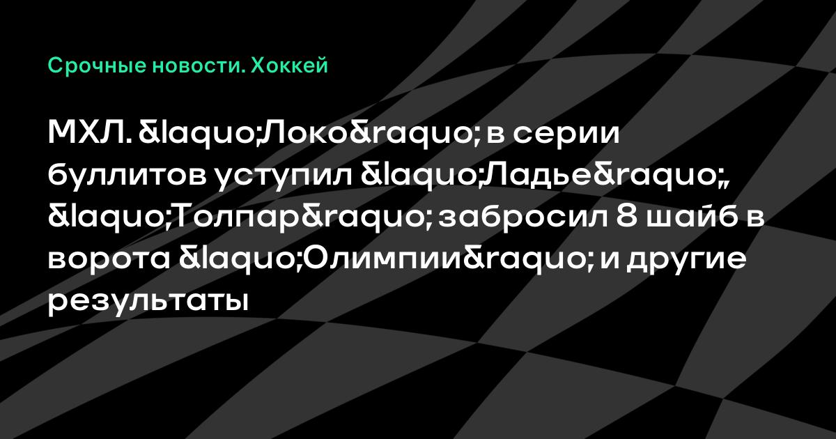 МХЛ. «Локо» в серии буллитов уступил «Ладье», «Толпар» забросил 8 шайб в ворота «Олимпии» и другие результаты
