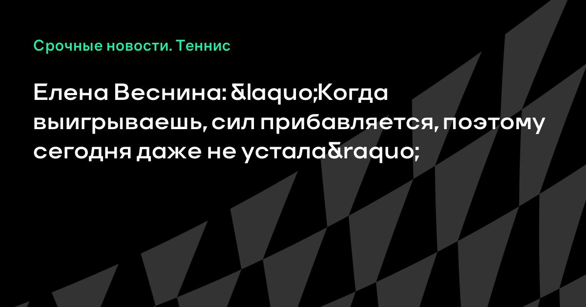 Елена Веснина: «Когда выигрываешь, сил прибавляется, поэтому сегодня даже не устала»