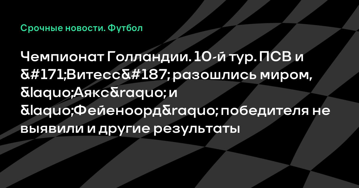 Чемпионат Голландии. 10-й тур. ПСВ и «Витесс» разошлись миром, «Аякс» и «Фейеноорд» победителя не выявили и другие результаты