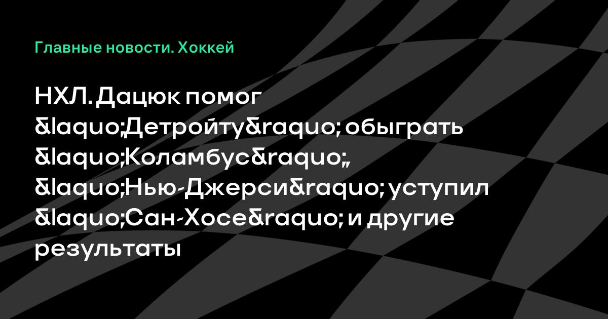 НХЛ. Дацюк помог «Детройту» обыграть «Коламбус», «Нью-Джерси» уступил «Сан-Хосе» и другие результаты