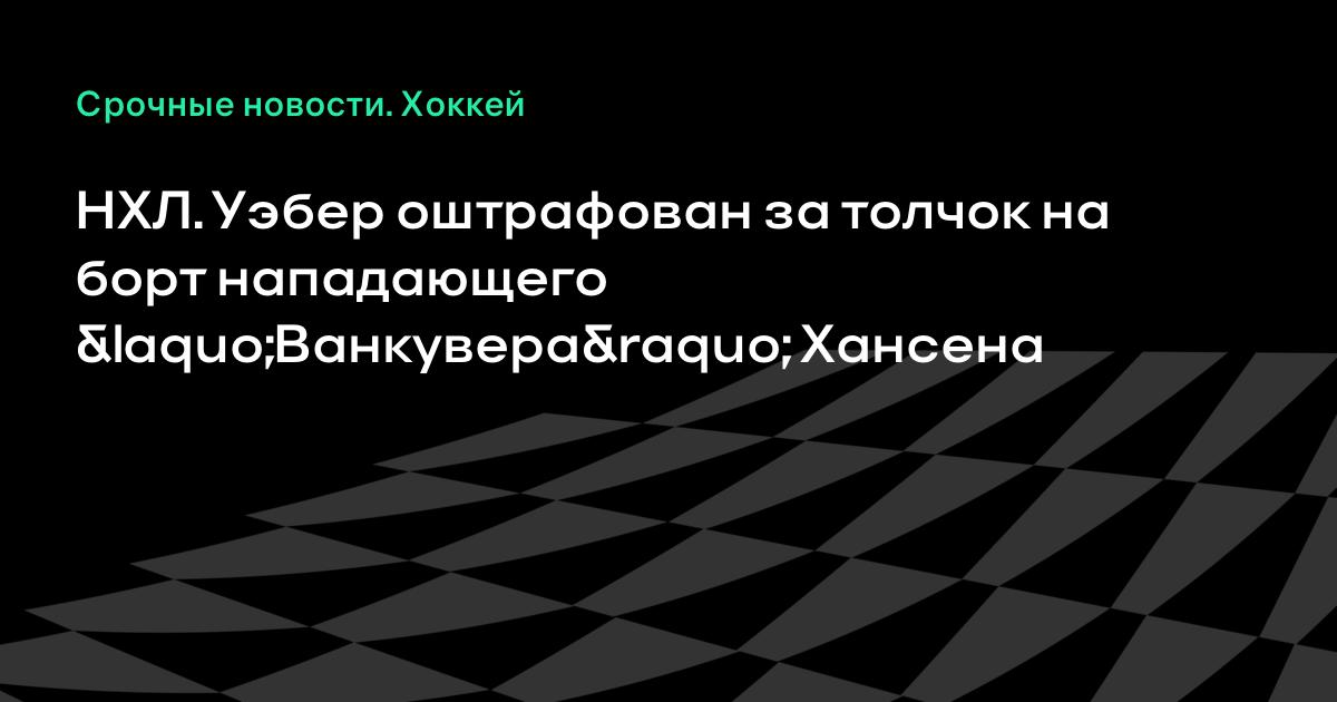 Защитник «Нэшвилла» Ши Уэбер по решению НХЛ был оштрафован на 2500 долларов за толчок на борт нападающего «Ванкувера» Янника Хансена.