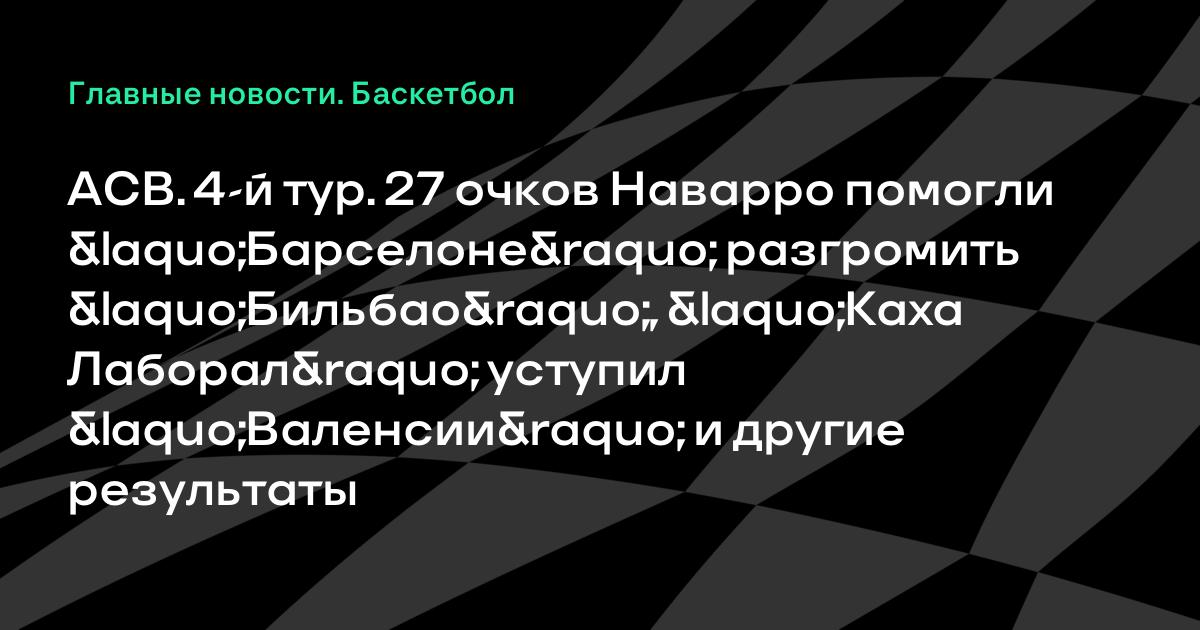 АСВ. 4-й тур. 27 очков Наварро помогли «Барселоне» разгромить «Бильбао», «Каха Лаборал» уступил «Валенсии» и другие результаты