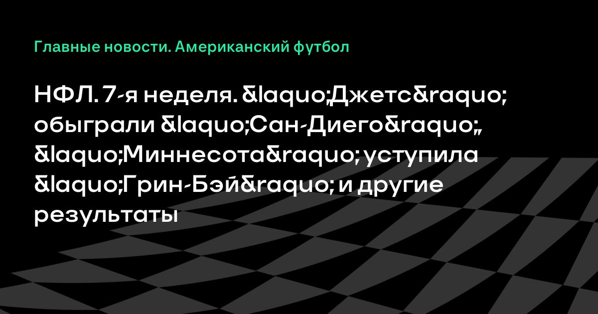 НФЛ. 7-я неделя. «Джетс» обыграли «Сан-Диего», «Миннесота» уступила «Грин-Бэй» и другие результаты