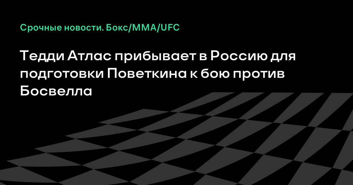 Тедди Атлас, тренер обладателя титула WBA в супертяжелом весе Александра Поветкина прибывает в Москву, чтобы начать подготовку боксера к поединку против американца Седрика Босвелла, который состоится 3 декабря в Хельсинки.