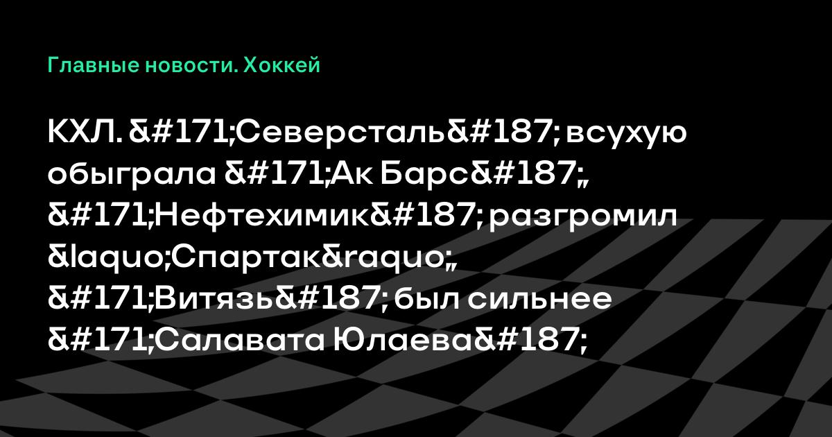 КХЛ. «Северсталь» всухую обыграла «Ак Барс», «Нефтехимик» разгромил «Спартак», «Витязь» был сильнее «Салавата Юлаева»