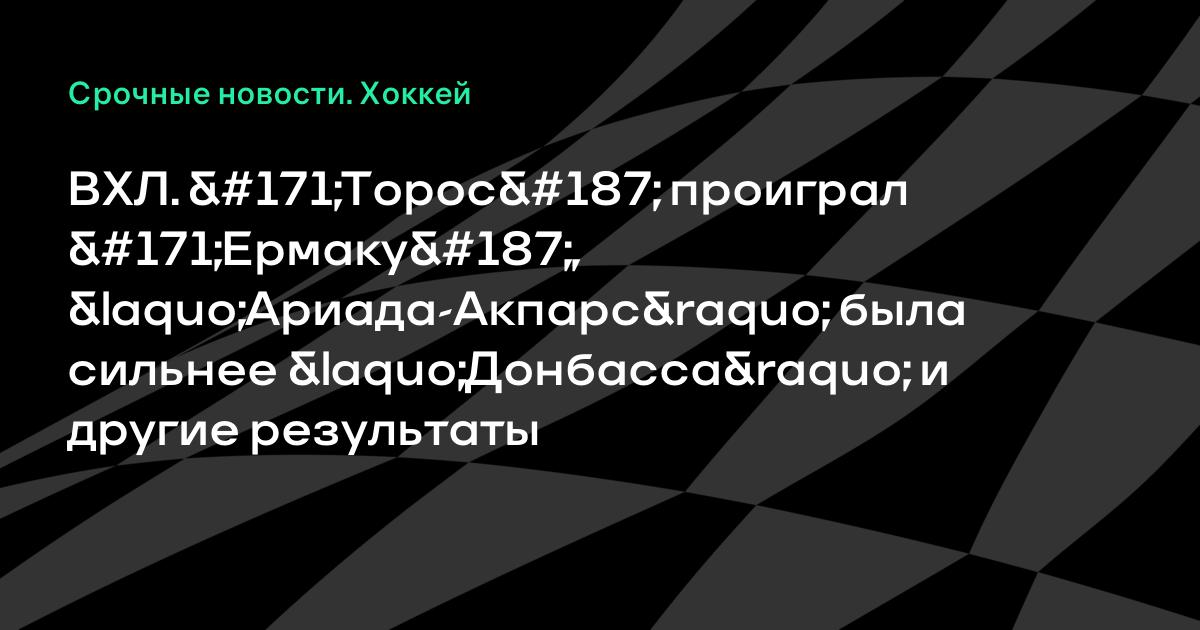 ВХЛ. «Торос» проиграл «Ермаку», «Ариада-Акпарс» была сильнее «Донбасса» и другие результаты