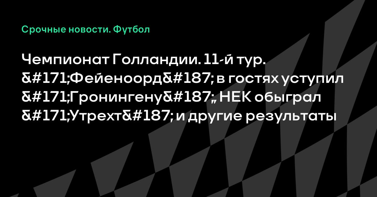 Чемпионат Голландии. 11-й тур. «Фейеноорд» в гостях уступил «Гронингену», НЕК обыграл «Утрехт» и другие результаты