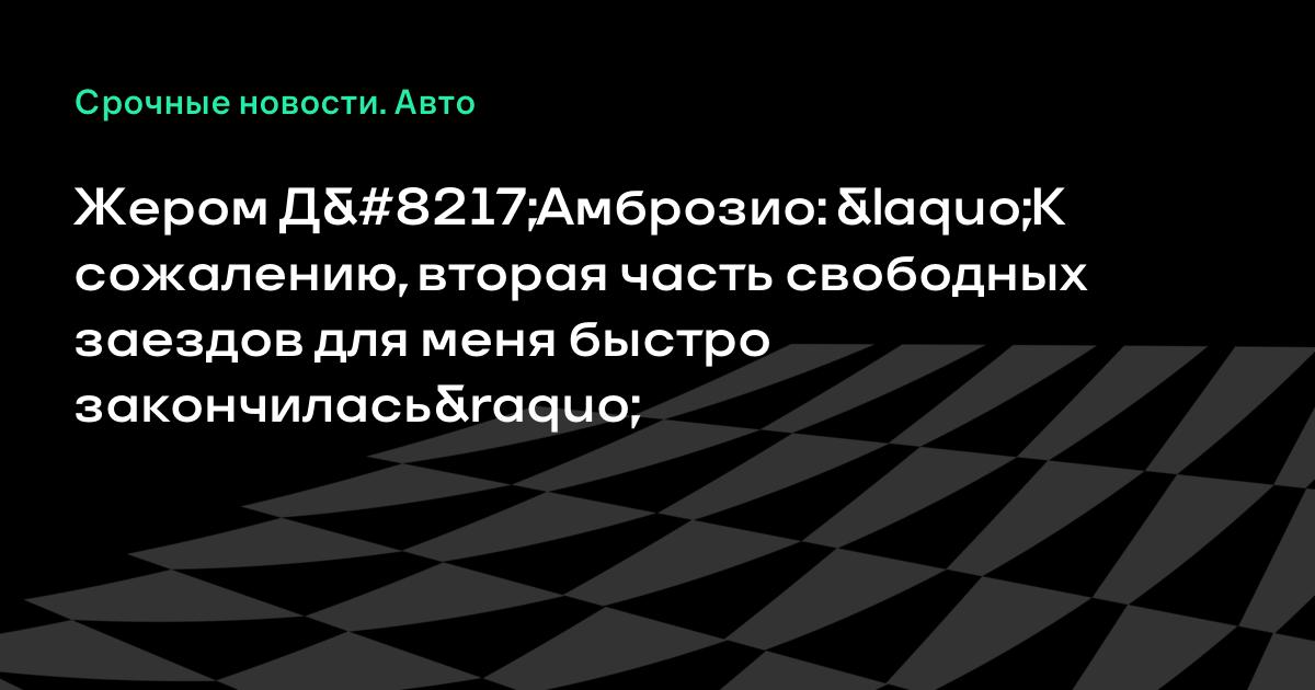 «К сожалению, вторая часть свободных заездов закончился для меня достаточно быстро. При прохождении одиннадцатого поворота допустил ошибку, в результате чего врезался в заграждение и повредил заднее антикрыло. Стоит отметить, что до аварии удавалось показывать неплохие результаты. Мы потеряли некоторое количество тренировочного времени, но у нас все еще остается завтрашняя третья часть свободных заездов, в которой мы постараемся наверстать упущенное», – цитирует Д’Амброзио пресс-служба команды.