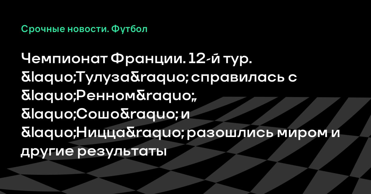 Чемпионат Франции. 12-й тур. «Тулуза» справилась с «Ренном», «Сошо» и «Ницца» разошлись миром и другие результаты