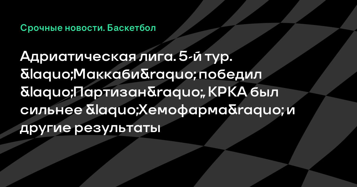 Адриатическая лига. 5-й тур. «Маккаби» победил «Партизан», КРКА был сильнее «Хемофарма» и другие результаты