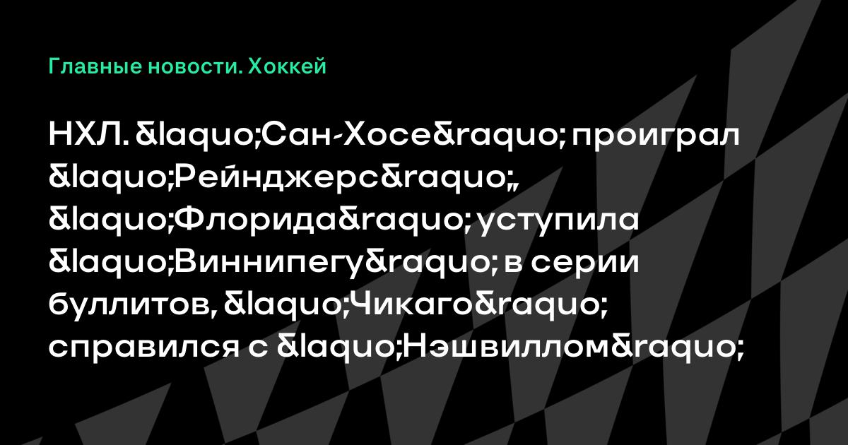 НХЛ. «Сан-Хосе» проиграл «Рейнджерс», «Флорида» уступила «Виннипегу» в серии буллитов, «Чикаго» справился с «Нэшвиллом»