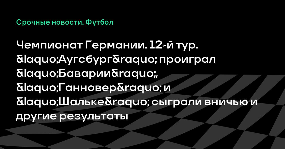 Чемпионат Германии. 12-й тур. «Аугсбург» проиграл «Баварии», «Ганновер» и «Шальке» сыграли вничью и другие результаты