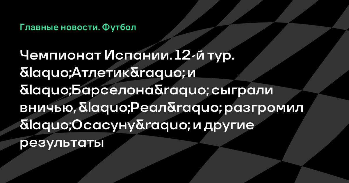 Чемпионат Испании. 12-й тур. «Атлетик» и «Барселона» сыграли вничью, «Реал» разгромил «Осасуну» и другие результаты