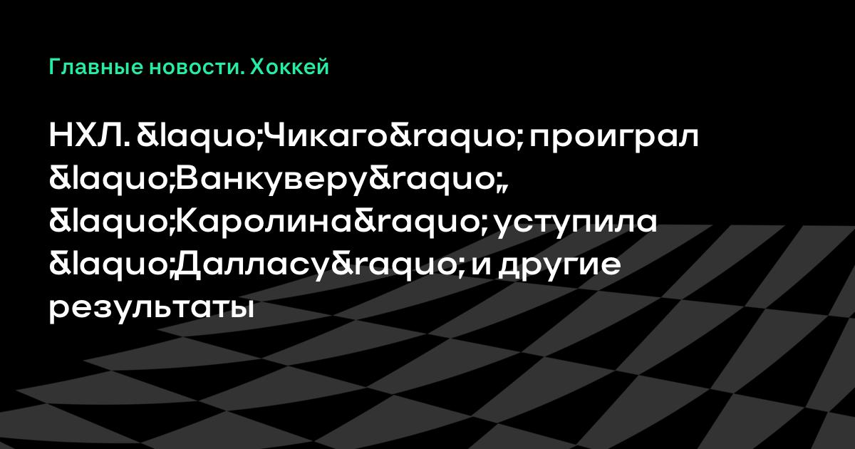 НХЛ. «Чикаго» проиграл «Ванкуверу», «Каролина» уступила «Далласу» и другие результаты