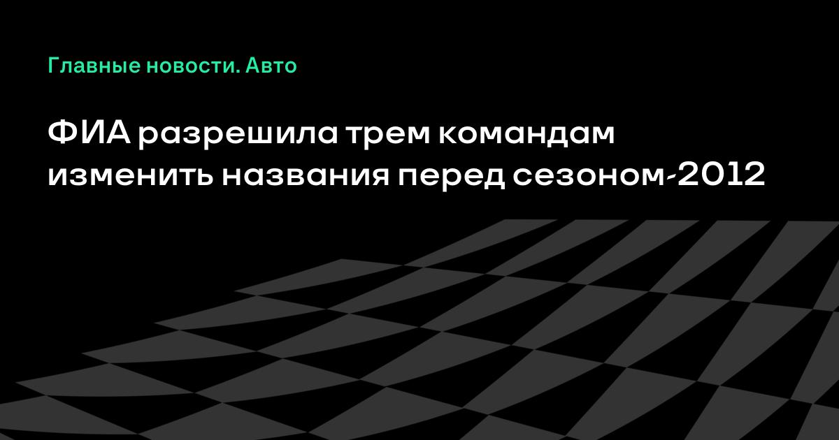 Сегодня ФИА дала формальное разрешение трем командам «Формулы-1» изменить свои названия перед сезоном-2012, сообщает журналист Адам Купер в своем блоге.