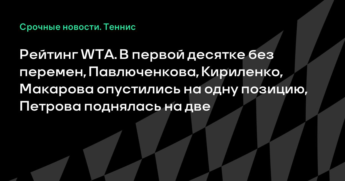Рейтинг WTA. В первой десятке без перемен, Павлюченкова, Кириленко, Макарова опустились на одну позицию, Петрова поднялась на две