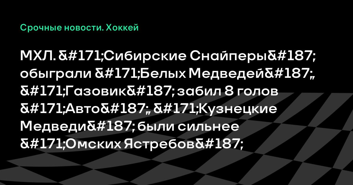 МХЛ. «Сибирские Снайперы» обыграли «Белых Медведей», «Газовик» забил 8 голов «Авто», «Кузнецкие Медведи» были сильнее «Омских Ястребов»