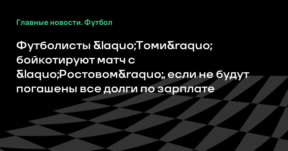 Как стало известно Sports.ru, игроки «Томи» не полетят на матч 31-го тура чемпионата России против «Ростова», если руководство клуба не погасит перед ними задолженность по зарплате.