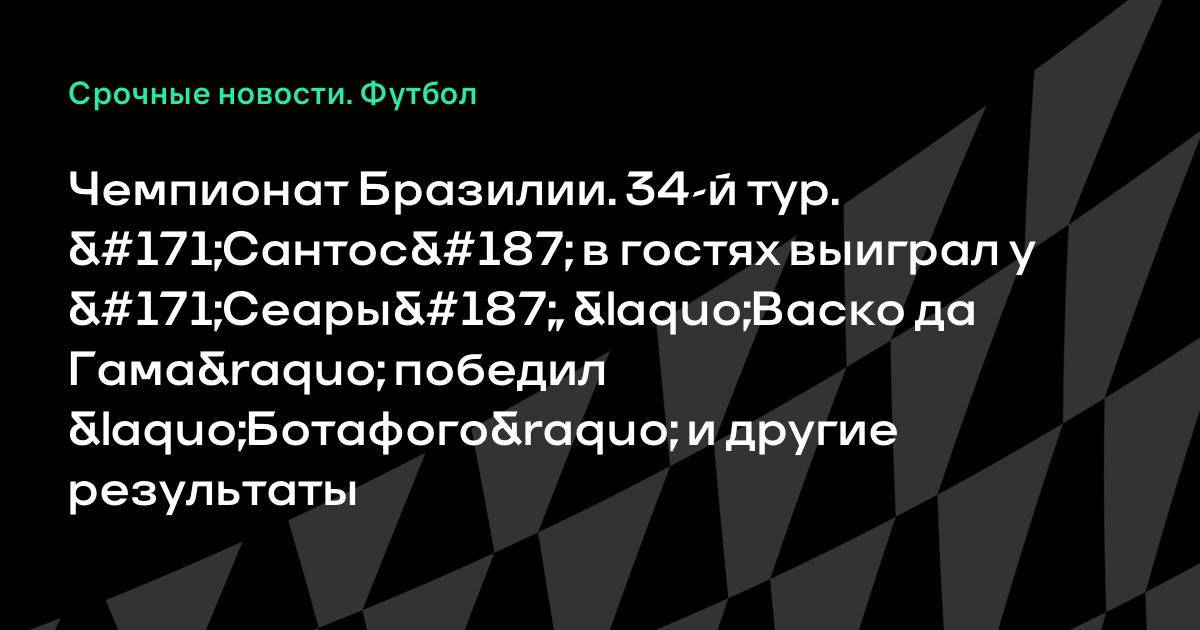 Чемпионат Бразилии. 34-й тур. «Сантос» в гостях выиграл у «Сеары», «Васко да Гама» победил «Ботафого» и другие результаты