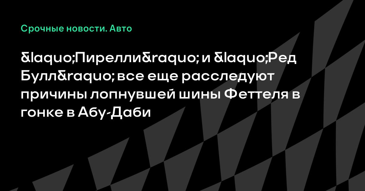 Руководитель автоспортивного подразделения «Пирелли» Пол Хэмбри рассказал, что расследование причин внезапно лопнувшей шины на болиде пилота «Ред Булл» Себастьяна Феттеля в гонке в Абу-Даби все еще продолжается.