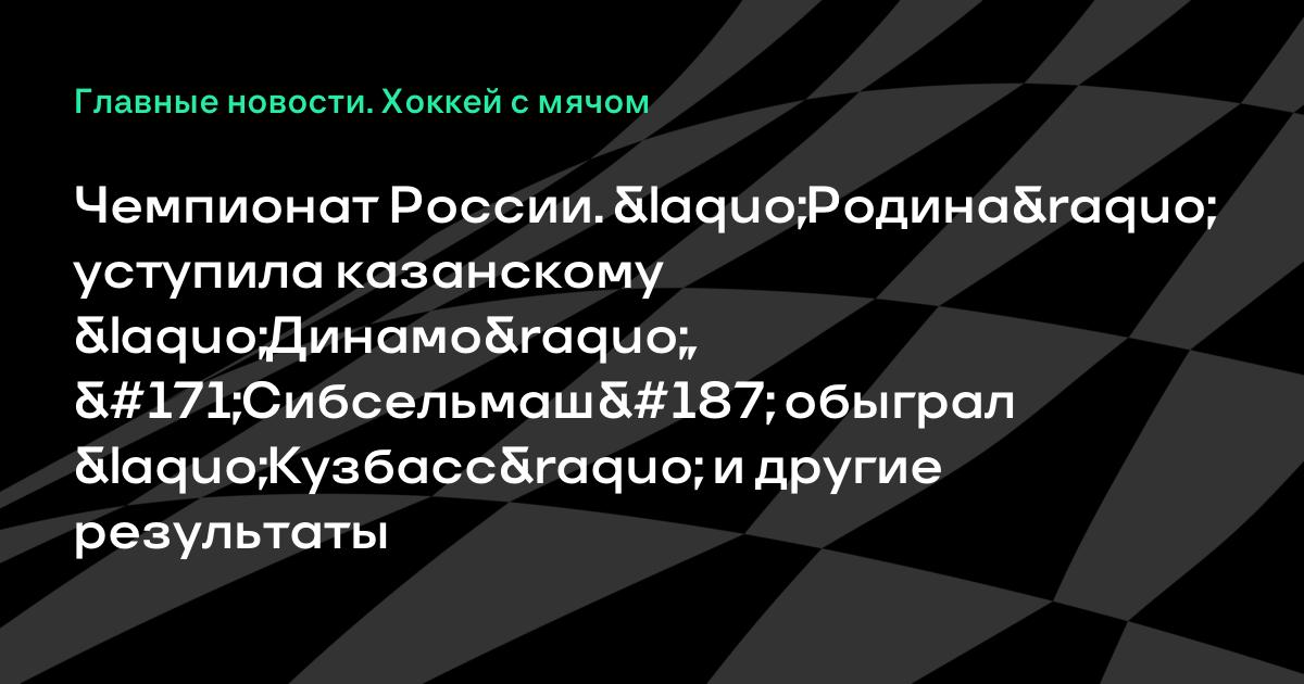 Чемпионат России. «Родина» уступила казанскому «Динамо», «Сибсельмаш» обыграл «Кузбасс» и другие результаты