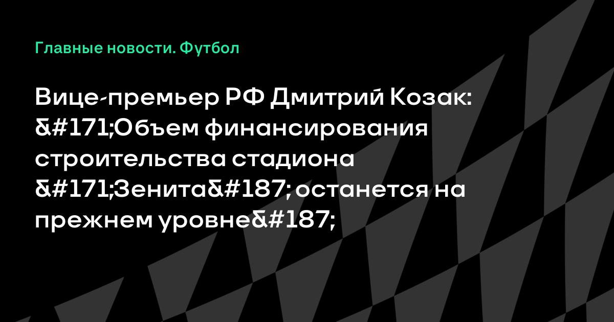 Вице-премьер РФ Дмитрий Козак: «Объем финансирования строительства стадиона «Зенита» останется на прежнем уровне»
