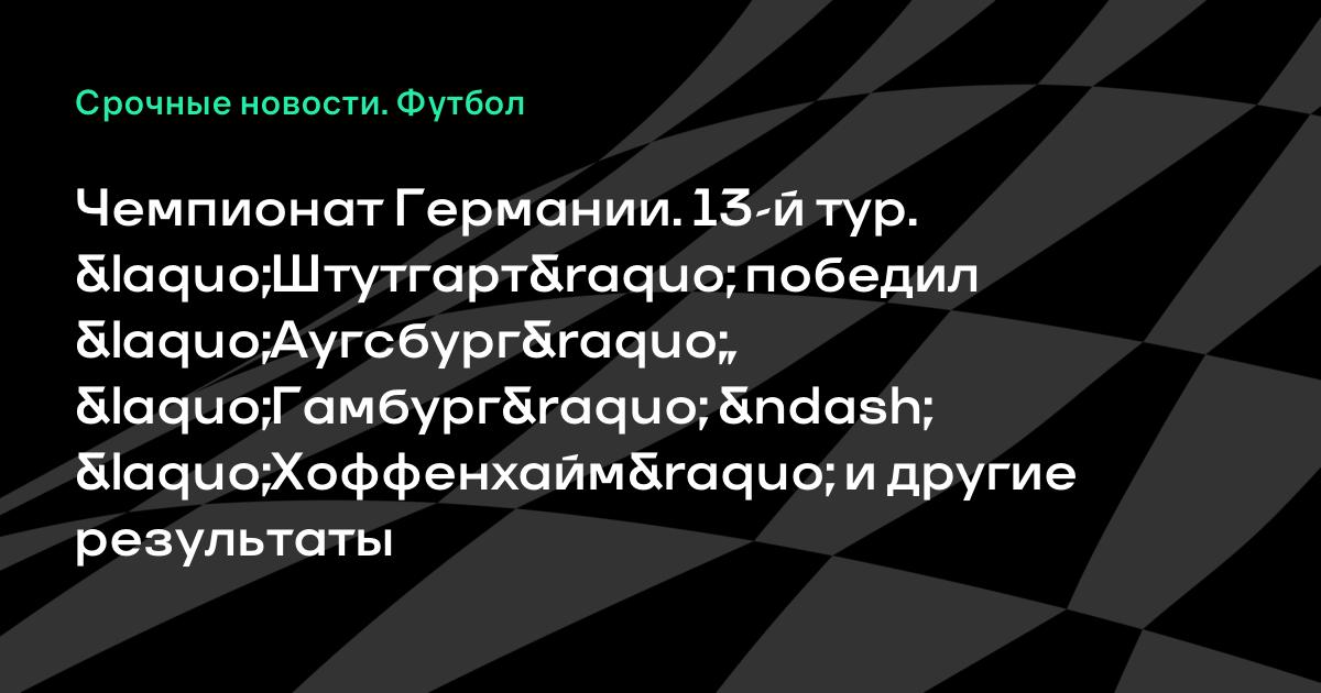 Чемпионат Германии. 13-й тур. «Штутгарт» победил «Аугсбург», «Гамбург» – «Хоффенхайм» и другие результаты