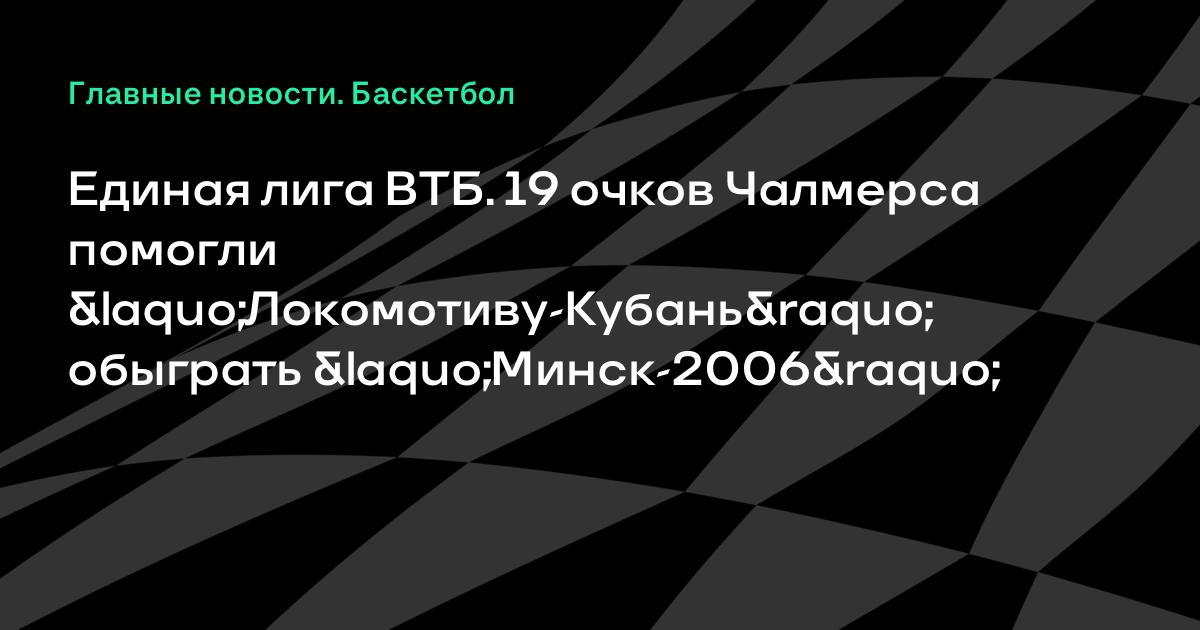 Единая лига ВТБ. 19 очков Чалмерса помогли «Локомотиву-Кубань» обыграть «Минск-2006»