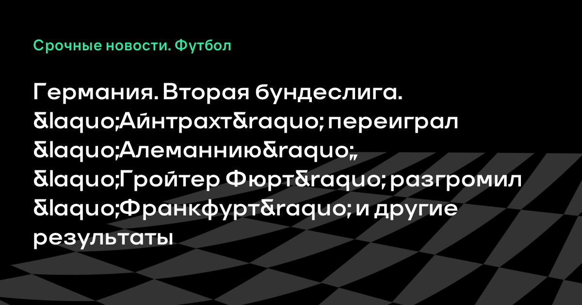 Германия. Вторая бундеслига. «Айнтрахт» переиграл «Алеманнию», «Гройтер Фюрт» разгромил «Франкфурт» и другие результаты
