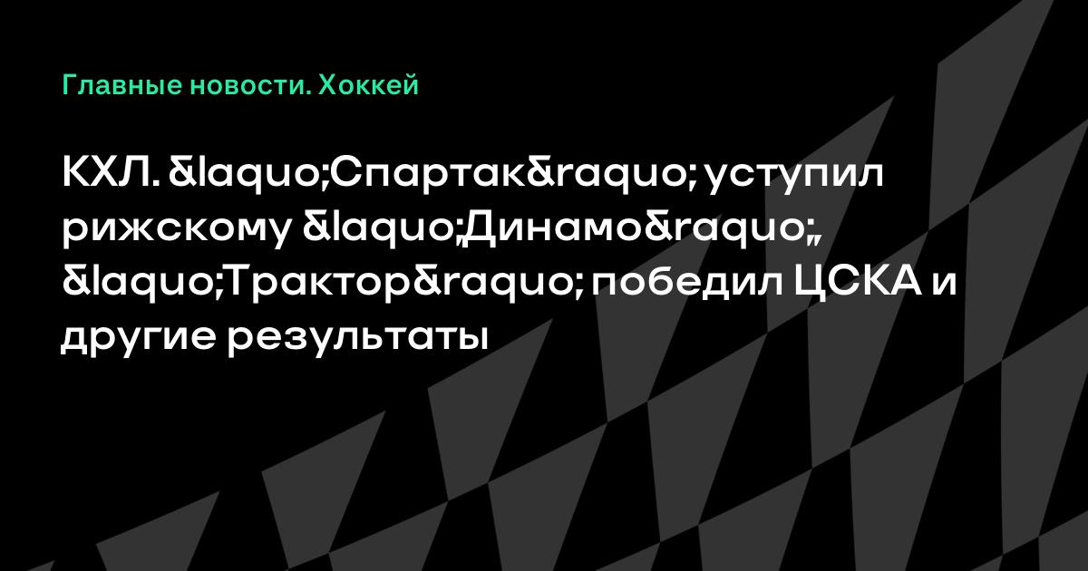 КХЛ. «Спартак» уступил рижскому «Динамо», «Трактор» победил ЦСКА и другие результаты