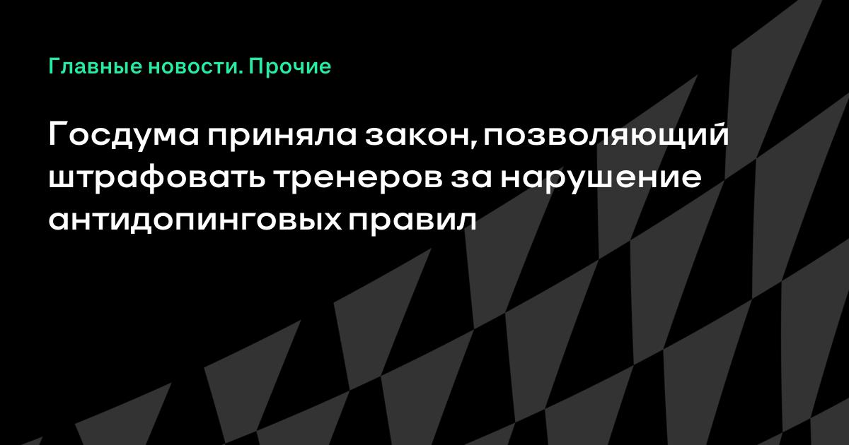 Госдума приняла закон, позволяющий штрафовать тренеров за нарушение антидопинговых правил