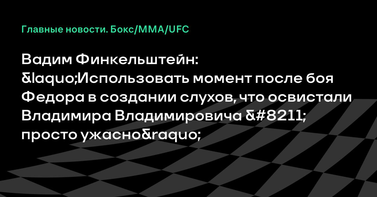 Вадим Финкельштейн: «Использовать момент после боя Федора в создании слухов, что освистали Владимира Владимировича – просто ужасно»