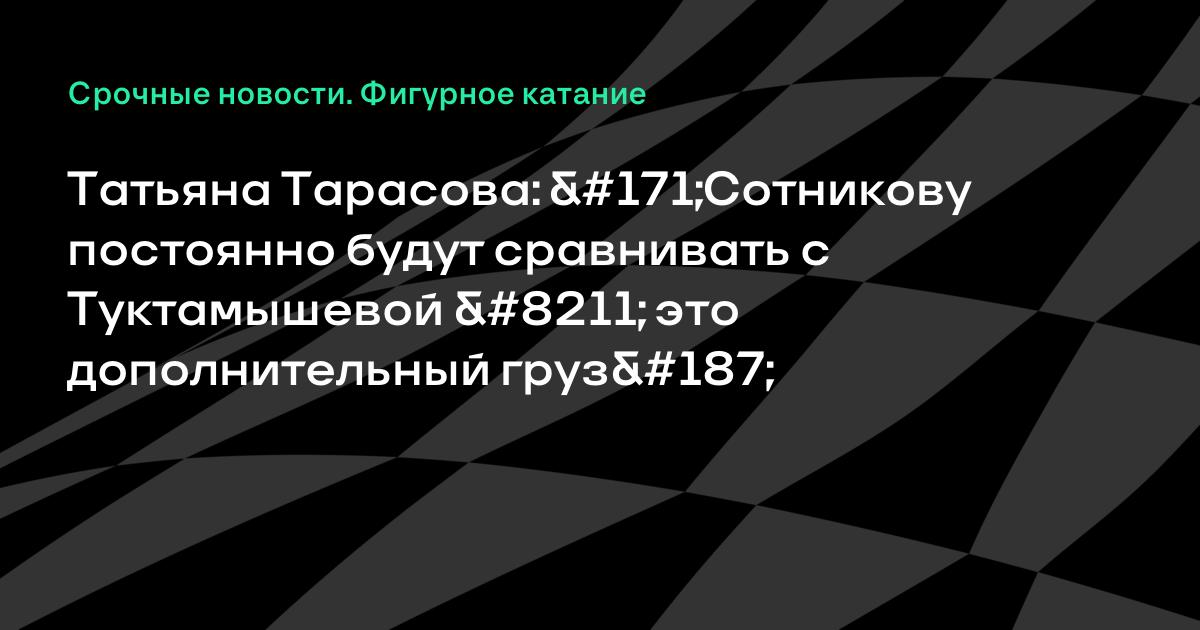 Другой вопрос, что Сотникову постоянно будут сравнивать с Лизой Туктамышевой, как в свое время сравнивали Лешу Ягудина и Женю Плющенко. Для спортсменов это всегда дополнительный груз. Как и для их тренеров. Но это и двигает фигурное катание вперед, – рассказала Тарасова в интервью «Спорт-Экспрессу».