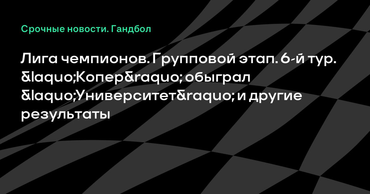 Лига чемпионов. Групповой этап. 6-й тур. «Копер» обыграл «Университет» и другие результаты