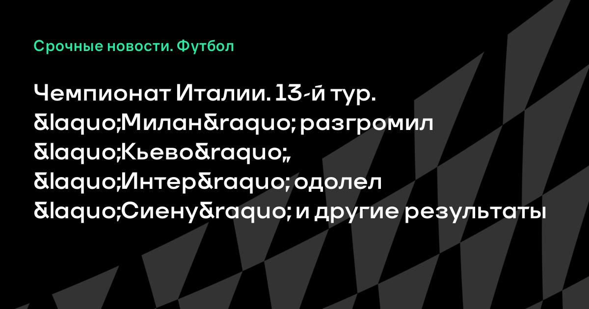 Чемпионат Италии. 13-й тур. «Милан» разгромил «Кьево», «Интер» одолел «Сиену» и другие результаты
