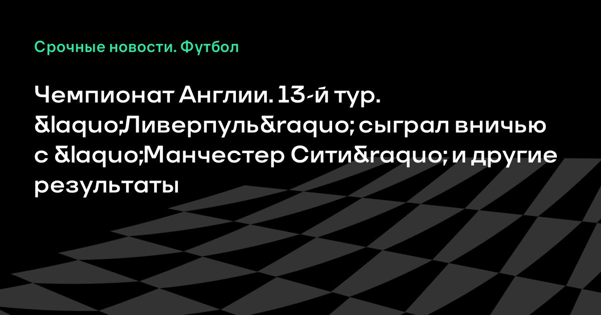 Чемпионат Англии. 13-й тур. «Ливерпуль» сыграл вничью с «Манчестер Сити» и другие результаты