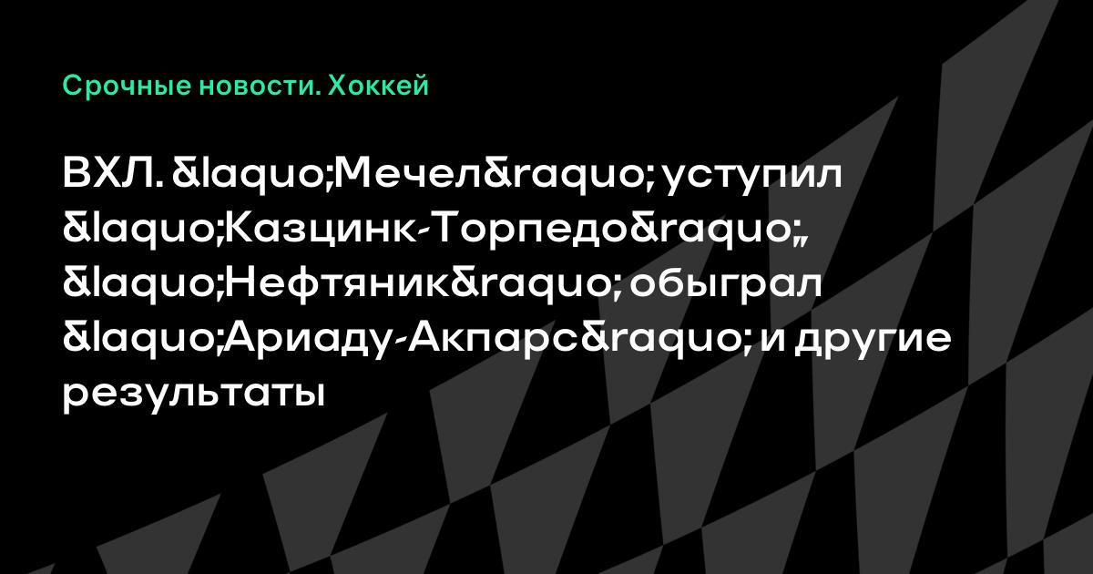 ВХЛ. «Мечел» уступил «Казцинк-Торпедо», «Нефтяник» обыграл «Ариаду-Акпарс» и другие результаты
