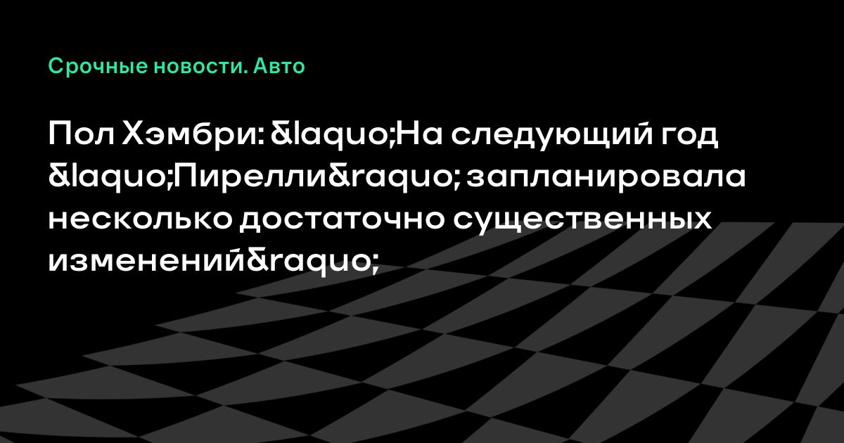 Руководитель автоспортивного подразделения «Пирелли» Пол Хэмбри рассказал о планах своей компании не следующий сезон «Формулы-1».