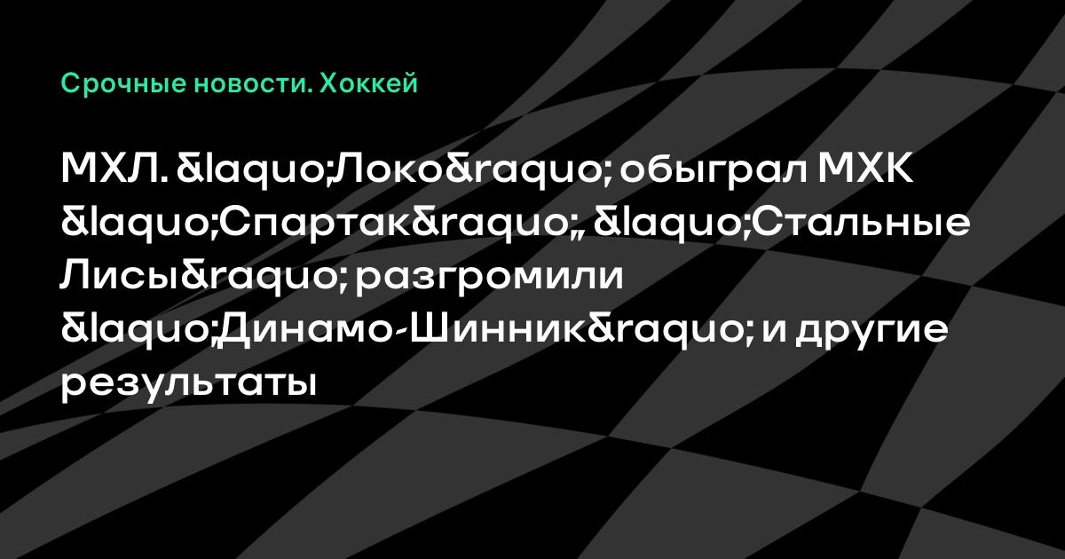 МХЛ. «Локо» обыграл МХК «Спартак», «Стальные Лисы» разгромили «Динамо-Шинник» и другие результаты