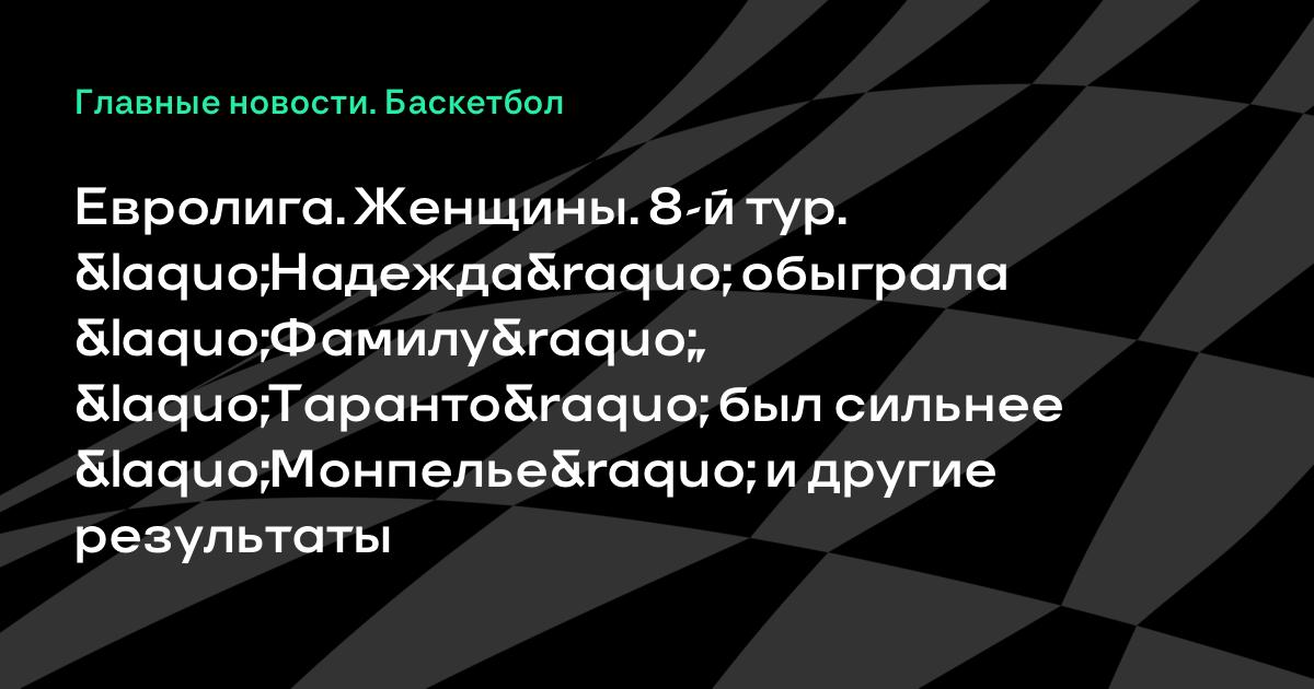 Евролига. Женщины. 8-й тур. «Надежда» обыграла «Фамилу», «Таранто» был сильнее «Монпелье» и другие результаты