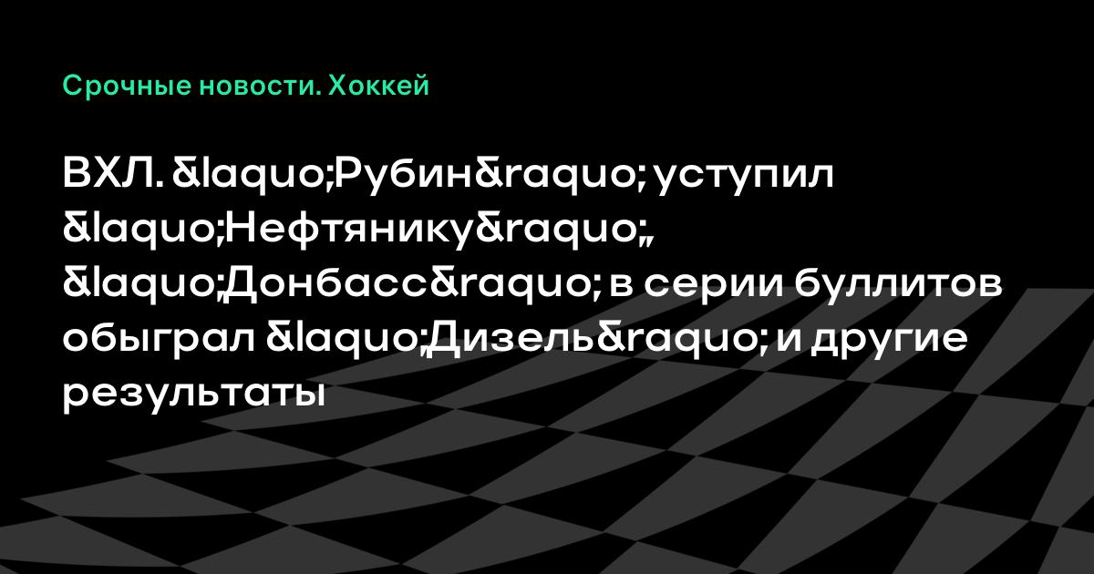ВХЛ. «Рубин» уступил «Нефтянику», «Донбасс» в серии буллитов обыграл «Дизель» и другие результаты