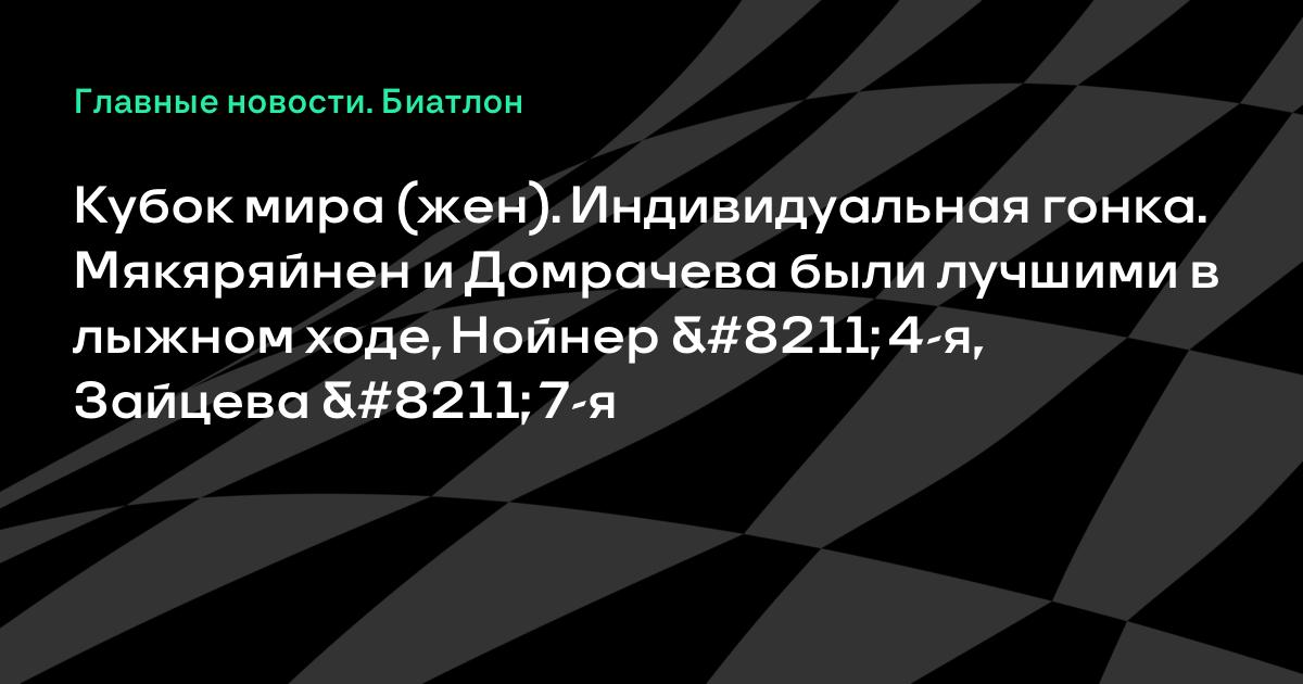 Кубок мира (жен). Индивидуальная гонка. Мякяряйнен и Домрачева были лучшими в лыжном ходе, Нойнер – 4-я, Зайцева – 7-я