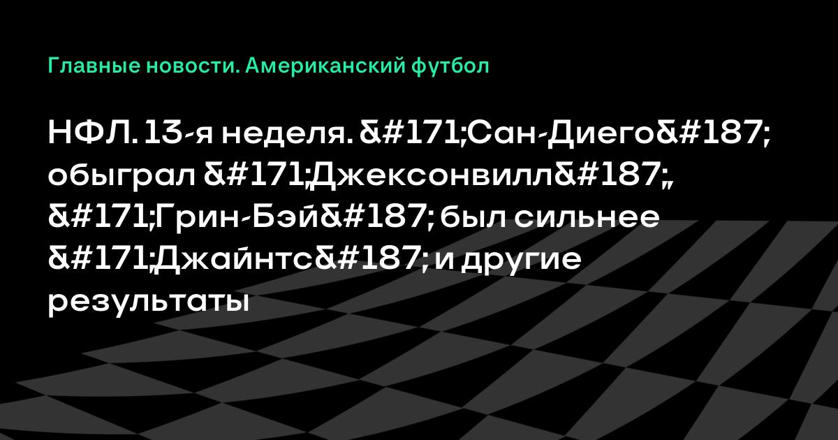 НФЛ. 13-я неделя. «Сан-Диего» обыграл «Джексонвилл», «Грин-Бэй» был сильнее «Джайнтс» и другие результаты