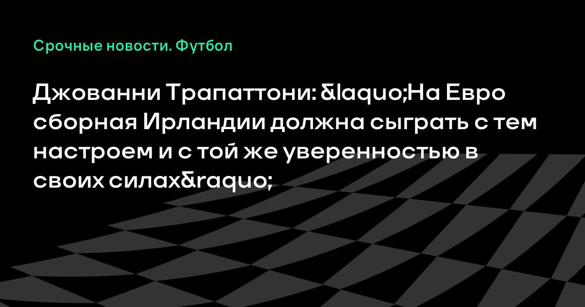 Джованни Трапаттони: «На Евро сборная Ирландии должна сыграть с тем настроем и с той же уверенностью в своих силах»