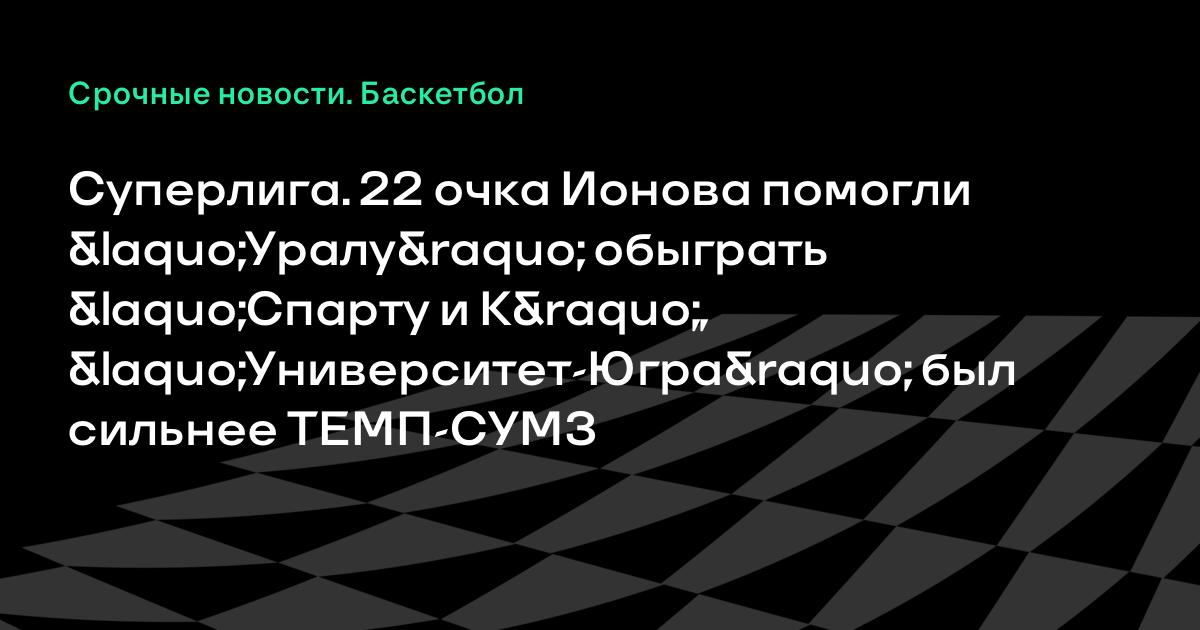 Суперлига. 22 очка Ионова помогли «Уралу» обыграть «Спарту и К», «Университет-Югра» был сильнее ТЕМП-СУМЗ