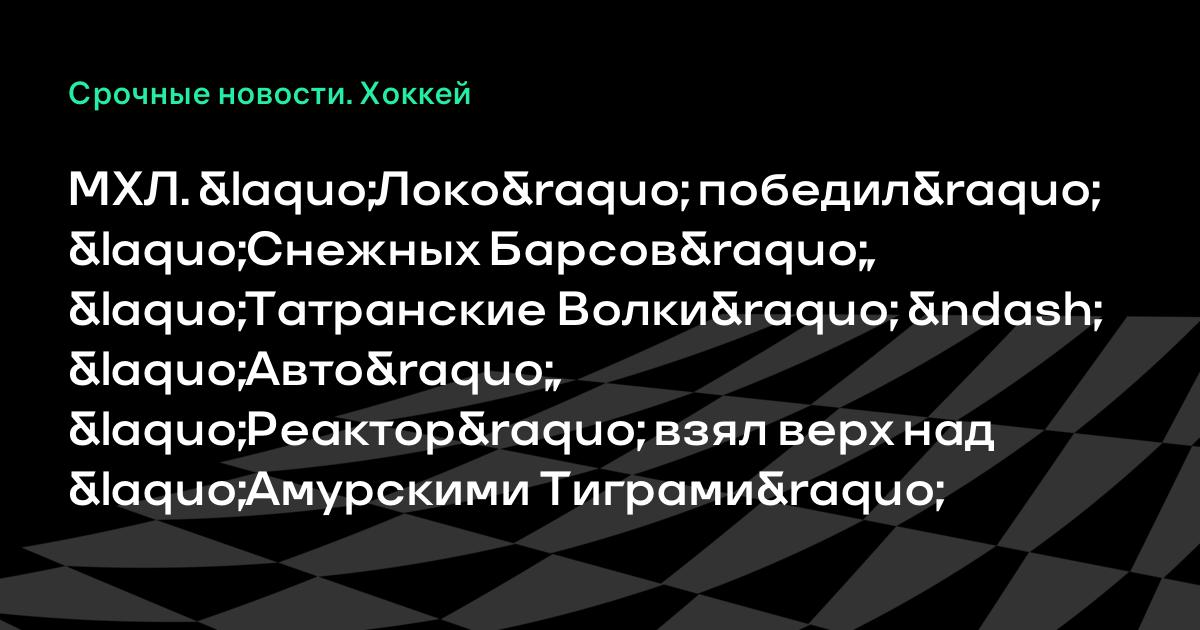 МХЛ. «Локо» победил» «Снежных Барсов», «Татранские Волки» – «Авто», «Реактор» взял верх над «Амурскими Тиграми»